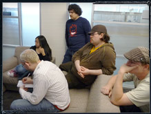 ![]() 1Up.com editorial staff intently keep an eye on the events at the screen. |